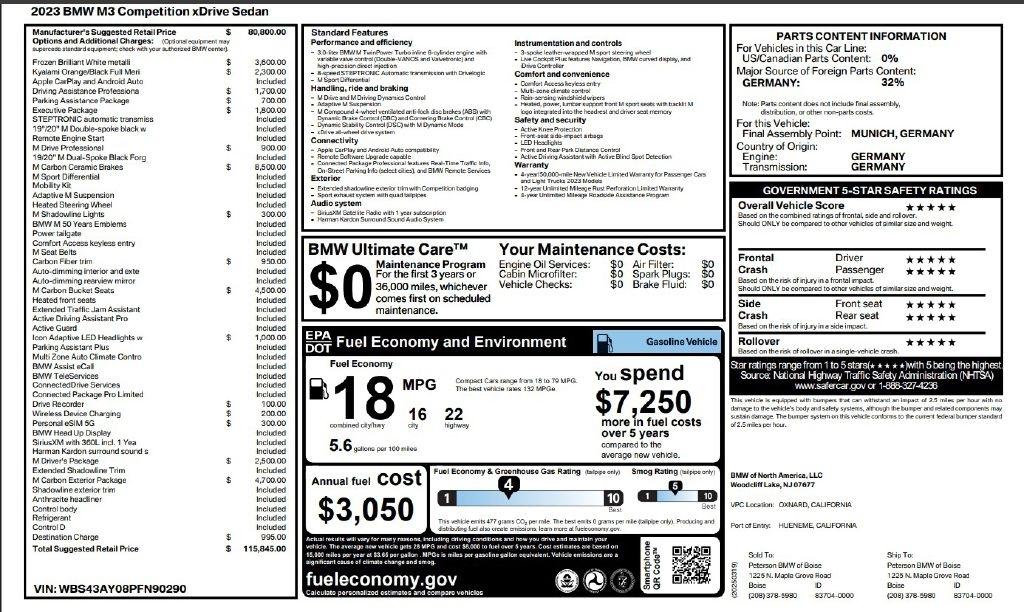 2023 BMW M3 Competition xDrive Sedan $116K MSRP